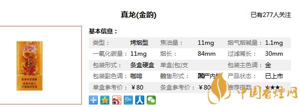 真龙金韵香烟参数信息