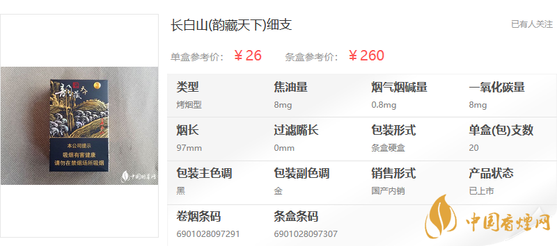 【长白山细支香烟多少钱一盒 长白山细支香烟价格表图大全】相关推荐文章:
