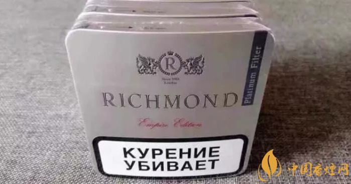 RICHMOND,译作里士满,也叫大富豪。这款铁盒白弯EMPIZE EDITION外观和开启方式足够吸引人,俄罗斯大富豪烟多少钱?俄罗斯大富豪香烟200元。弯道侧滑。帅气的侧滑让人忍不住瞩目,俄罗斯大富豪白弯横滑盖设计,内有可反复粘贴锡纸,白色烟嘴白色烟身。