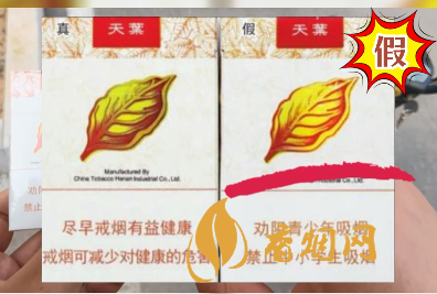 真烟烟盒上的天叶图案纹路清晰并且有很强的凹凸感,而假烟模糊没有立体感。