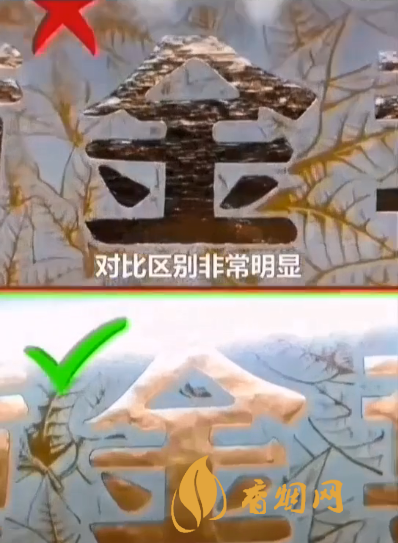 真烟采用烫金工艺,做工精致,文字放大后没有残缺和裂纹,而假烟最为明细之处就是文字放大后裂纹清晰可见。