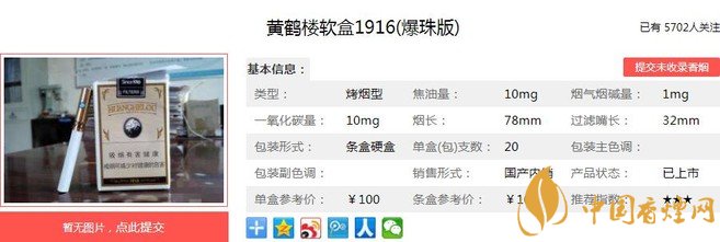三、黄鹤楼软盒1916(爆珠版)香烟参数