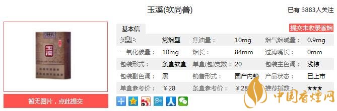尚善玉溪秉承玉溪家族醇厚清香的经典本味,精选云烟之乡优质烟叶,烟叶配伍丰富而协调,呈现温润醇香的细腻口感,软包硬化的独特包装,完美保护每支尚善玉溪的卓越享受。经jrs直播小编市场调查玉溪软尚善售价为28元/包。
