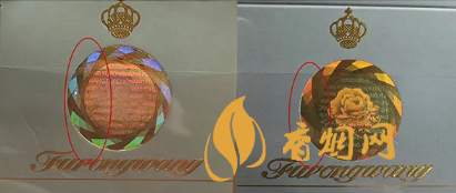 真烟镭射标为一个标准的同心圆,假烟的镭射标左宽右窄圆形不规则。