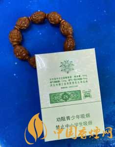 外盒采用白色作为主色打底,正面中间印有荷花的图案,在荷花下面写着“吸烟有害健康”此类华语,盒子背面用绿色字做一些介绍