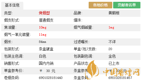 | 类型 :烤烟型 | 焦油量 :10mg | 烟气烟碱量 :1mg | 一氧化碳量 :10mg |