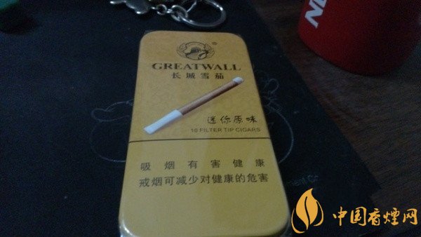 长城雪茄烟迷你原味整体设计不错,金黄色铁盒加奶黄色塑料滤嘴设计,还有选材也特别好,选用优质茄芯叶片卷制而成,烟气缠绵,口味自然而醇和,有种清新的甜润感。总的本说能给吸食者不错的体验。下面就从以下几个方面来分析这款长城雪茄烟怎么样。
