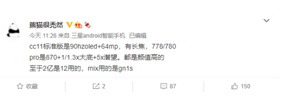 根据微博上的爆料博主的消息,小米CC 11将会至少有两个不同的版本,并主打轻薄的机身以及高颜值的设计。外观将会成为该小米 CC 系列的主要亮点以及卖点之一,并预计会用于攻打女性市场。