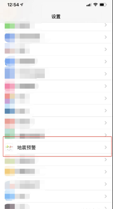 2、下载安装完成后打开设置,在设置列表中找到地震预警app,点击进去。