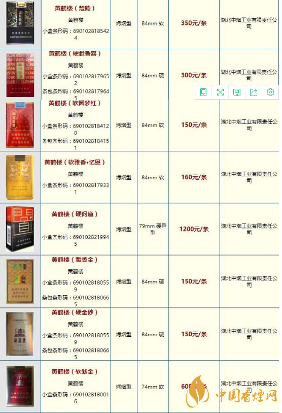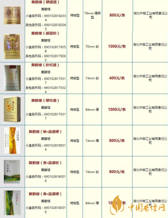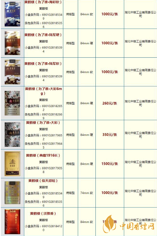 黄鹤楼香烟价格表图一览