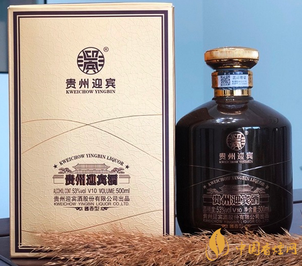 贵州迎宾酒V10,贵州迎宾酒股份有限公司推出的一款53度酱香型白酒。以本地优质糯高粱和小麦为原料,经过九次旋转蒸笼方向,九次蒸煮,蒸馏,八次糖化,发酵,七次取酒而得原酒,原酒再经“酒槽窖酒法”“桑拿老熟法”醇化“植物埋藏法”陈酿而成之。使其色清透明,酱香突出,醇香馥郁,幽雅细腻,入口柔绵,清冽甘爽,酒体醇厚丰满,回味悠长的特点。