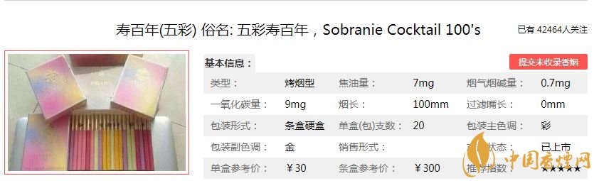 寿百年(五彩香烟价格参数: