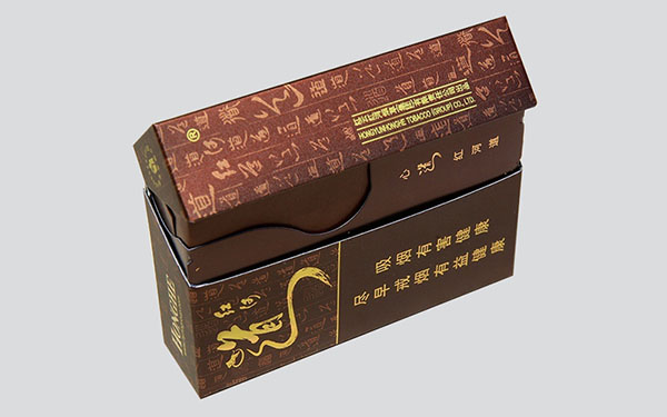 [包装装潢]:包装采用全球独享专利的侧开式卫生香烟盒,全新的卫生取烟方式,尽显对消费者的尊重、关爱。置空式商标构图,只对品牌元素做出重点体现,布局以中国传统文化书法艺术的“道”字来体现深厚文化底蕴,融汇奔牛、河流造型的“红河·道”品牌字型设计激扬、流畅,将红河不断创新、不断追求的精神意蕴内涵其中。整体设计不仅是精心的美学呈现,更是基于红河品牌价值的核心表达;不是刻意的工艺堆砌,而是对深厚“道”文化的探寻与深思。整款烟包呈现晶莹感、柔顺感、立体感。