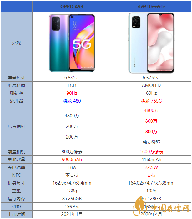 OPPOA93和小米10青春版都是价位相同的两款手机,不少小伙伴都不知道该如何选择,那么OPPOA93和小米10有什么区别?哪款手机更值得入手?下面jrs直播小编将对OPPOA93和小米10青春版参数对比进行介绍,感兴趣的朋友一起来看看吧!