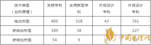 加热不燃烧型卷烟专利技术分类统计表(至2017年,数据来源国家知识产权局)