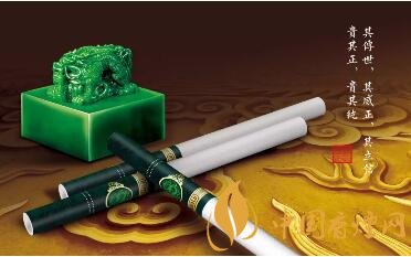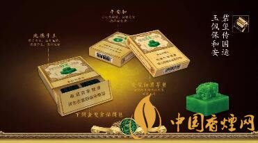取“玉溪(双中支翡翠)”烟盒静观,其龙纹环绕,王者其色,注定生而不凡,尊贵无上。烟盒正面图案是清乾隆御宝交龙钮翡翠玉玺,正上方的“翡翠”两个字用翡翠色渲染,质感十足,一脉相承。烟盒正面中间,印有“比德于玉”四字,传递着“君子高义,玉有五德,比德于玉,温润而泽”的文化理念。