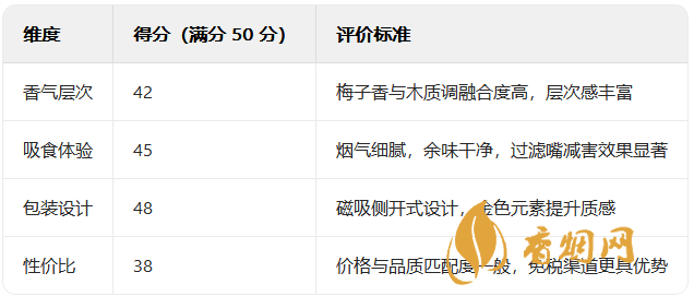 满足感与层次感:烟丝填充紧实,烟气饱满且满足感强,但中后段可能显空虚,尾段偶有杂气和涩感。