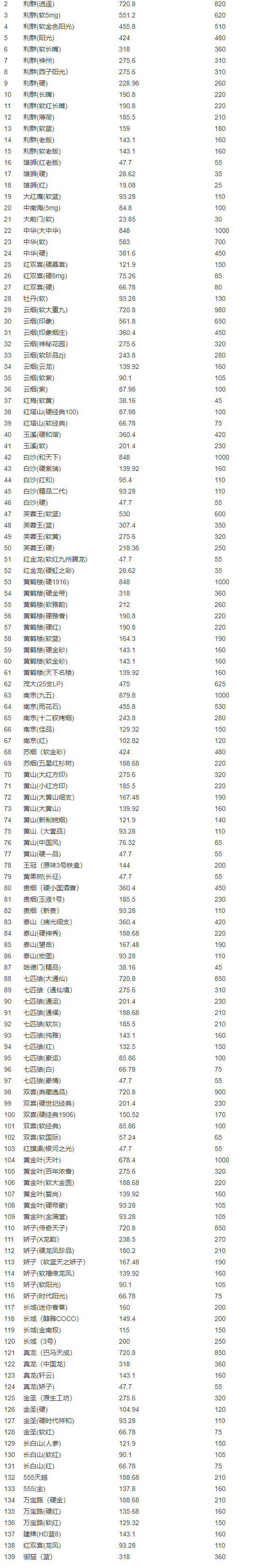 马鞍山卷烟批发价统一上调6% 大多数卷烟批发零售价格齐涨
