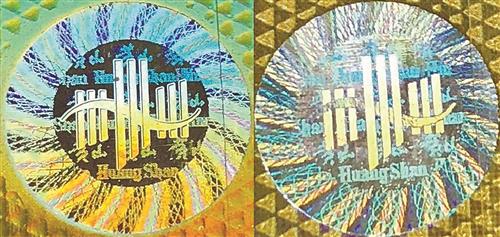 真假:小盒防伪标识对比:真品卷烟防伪标识采用激光全息防伪技术,不同角度呈现的图文线条清晰、立体感强。假冒卷烟防伪标识系伪造,变换角度呈现的图文线条模糊、立体感不强。
