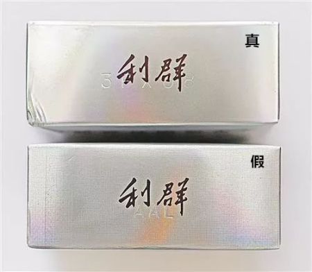 真烟商标纸采用喷铝纸、胶印和丝网印刷,“利群”及拼音字体采用烫银工艺,字体笔画丰满套印准确,用手摸没有凹凸感,且字体笔画上及商标纸银色部分无细小网格状;