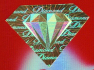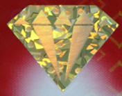 1、日月图: 金色椭圆和半圆月牙组成的标志,为镭射烫金印刷,上印有中文“钻石”及英文“DIAMOND”字样,字样清晰明亮。
