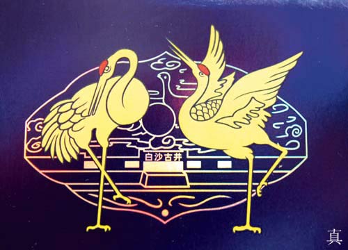 “鹤舞白沙”logo差异对比:真烟的logo印刷套色分明,图案上的鹤嘴尖部上长下短,头顶部红黄色层套色均匀细致,眼睛栩栩如生,“白沙古井”字体粗细一致、饱满,整体未见颜色图层重复、错位情况;假烟的logo印刷颜色死板,图案上的鹤嘴部上下长短几乎一致,鹤头顶部红黄色层套色有明显错位,眼部线条粗细不一、且因套色错层导致眼睛看上去无神,“白沙古井”字体粗细不一、印刷线条偏细,颜色图层有重复、错位情况。