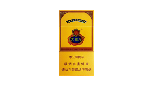 包装特点:秉承云烟传统尊贵典雅和大重九系列简洁、醒目的风格,分别以黄色和浅黄色为主色调,点缀红蓝相配的重九经典标识,以先烫后印的工艺,表达出古典式的尊贵,突显百年重九经典风范。商标采用三维全息防伪技术和二维码防伪技术结合,独具魅力的接装纸一体化设计以及双重压纹铝箔纸的搭配,更具尊贵不凡的气质。