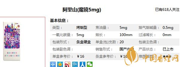 阿里山白魔镜香烟参数信息