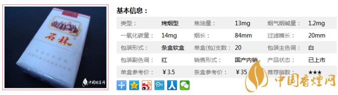 石林软香烟已经停产,但是经典是不可超越的,下面我们一起来看看它的参数信息。烟长84mm,焦油量13mg,烟碱量1.2mg,一氧化碳量14mg。