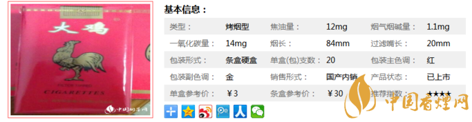 以上便是由jrs直播小编为大家介绍的关于大鸡香烟价格表图 大鸡富贵香烟口感及参数的相关信息,想要了解更多有关内容请点击:最新排行,爆珠香烟2018上半年销售量分析(十款)