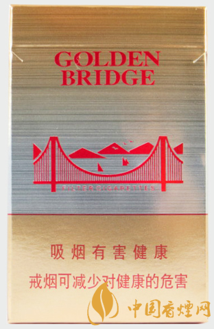 这包金桥烟盒是中间银色向上下渐变为淡红金色,看上去有金属拉丝的感觉。中间一座拉索桥,远处是一片海,几座岛,几片渔帆和几只海鸟,意境很不错。翻盖右侧是竖写的“金桥”商标和“混合型香烟”小字。嗅香有淡淡的可可香,过滤嘴是和芙蓉王一样的带雪花点的黄色。背面照,硬金桥的整体设计很简约但很现代,很有国际混合烟品的一贯简约风格。