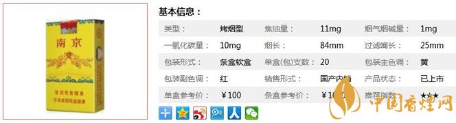 | 类型 :烤烟型 | 焦油量 :11mg | 烟气烟碱量 :1mg | 一氧化碳量 :10mg |