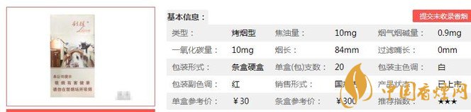 | 类型 :烤烟型 | 焦油量 :10mg | 烟气烟碱量 :0.9mg | 一氧化碳量 :10mg |