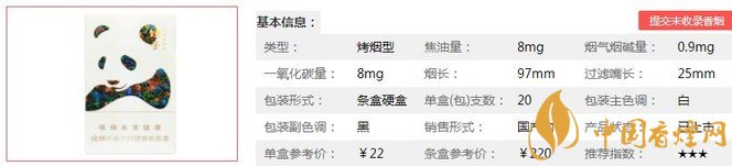 “2014 Pentawards全球顶级包装设计大赛”金奖包装作品,中细烟支设计彰显优雅与品位,山水云竹演绎的多彩熊猫,毛发纤毫毕现、双目炯炯有神,绝妙创意与精湛技艺相得益彰。该烟在低焦里算是不错的选择,如果是喜欢抽的烟都很醇很烈就不推荐此烟了。