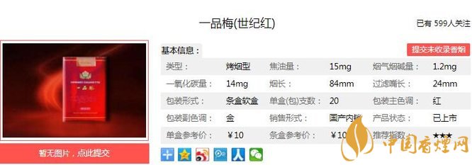 一品梅世纪红设计兼顾了卷烟健康消费需求,采用了多项创新技术。降低一氧化碳含量,大大降低了卷烟危害性,充分体现了卷烟健康消费需求。经jrs直播小编市场调查一品梅世纪红售价为10元/包。