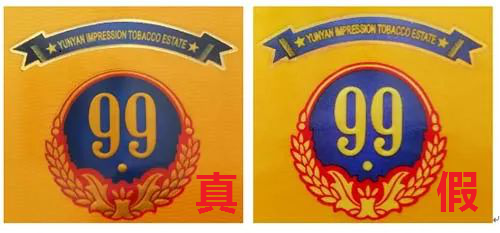1.该款假冒卷烟稻穗、99数字、圆点图案平整,无凸起。