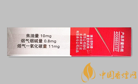 类型 :混合型 焦油量 :10mg 烟气烟碱量 :0.8mg 一氧化碳量 :10mg