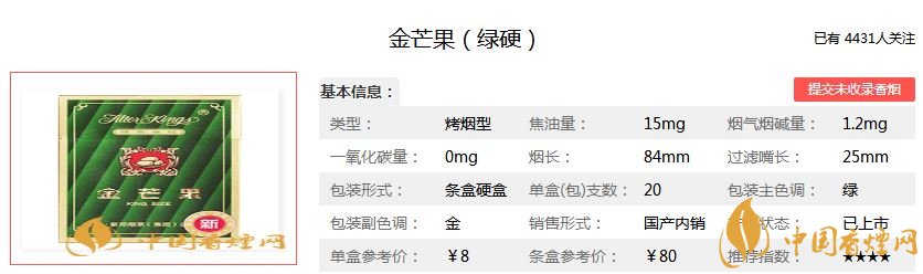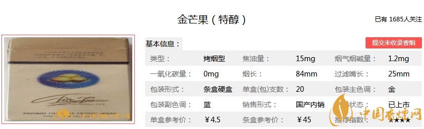 以上就是jrs直播为大家整理介绍的金芒果香烟的品牌介绍以及金芒果香烟价格表图一览,希望为大家提供帮助。想查询更多香烟信息,请关注jrs直播!