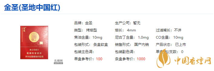 金圣中国红香烟价格表 金圣中国红香烟价格及参数介绍
