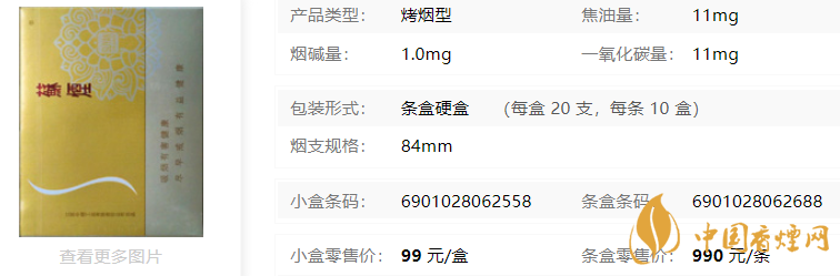 | 类型 :烤烟型 | 焦油量 :12mg | 烟气烟碱量 :1.1mg | 一氧化碳量 :12mg |