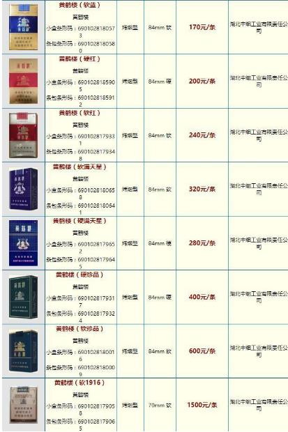 以上就是小编为大家带来黄鹤楼香烟价格表图大全,黄鹤楼香烟柔情峡谷价格的基本信息,但是小编想提醒一句以上信息源于网络,具体以官方消息为主,想要了解更多更新的香烟资讯,敬请关注jrs直播。