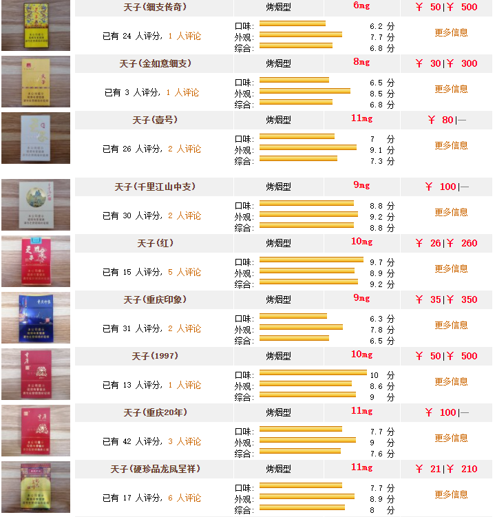 以上是小编整理的有关重庆产的天子烟多少钱一盒和重庆天子一号香烟价格表图片的相关资料信息,希望能够对大家了解相关情况有所帮助,想获得更多消息资讯请关注jrs直播!