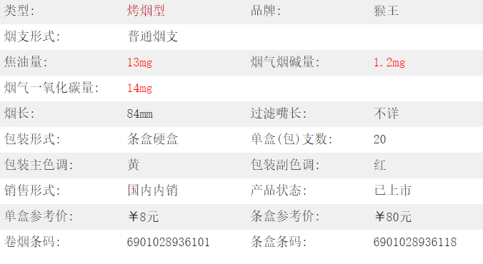 【猴王神采香烟价格表2021 猴王神采多少钱一盒】相关推荐文章: