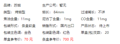 单盒参考价: 70 元;条盒参考价: 700 元