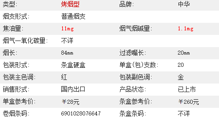 以上是小编整理的有关硬中华11mg多少钱一包2021和硬中华11mg价格的相关资料信息,希望能够对大家了解相关情况有所帮助,想获得更多消息资讯请关注jrs直播!