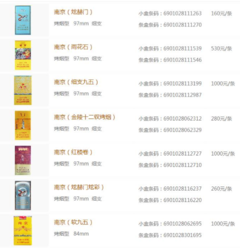 【南京香烟价格表2021价格表图片 南京香烟价格表和图片大全(最完整版)】相关推荐文章: