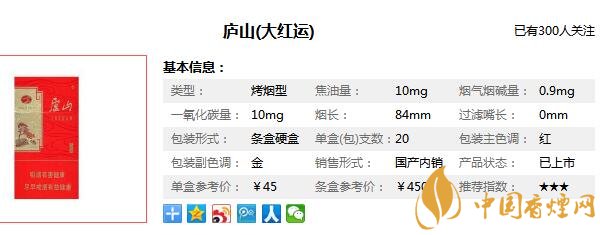 以上内容是由jrs直播小编为大家收集以及整理的关于,庐山大红运烟多少钱一包以及庐山大红运烟价格表 相关信息,想要了解更多信息详情请点击:长白山烟最贵多少钱一条。