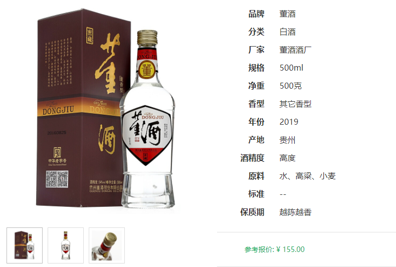 董酒为中国十大名酒,源于贵州,其配方独特被列为国家机密。传承古法,大师秘酿,坚持全手工古法酿制。品质上乘,好料酿好酒,130余种百草入曲,传统工艺精选酿造。比如老贵董,新贵董入口董香不突出,但口感较均。老贵董,董香味胜于新贵董。但尾子反苦。