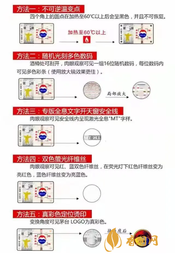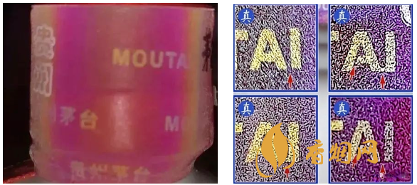 ①通过茅台赠送的识别器查验,真酒胶帽表面图文会消失,出现彩虹状背景和“贵州茅台”及“MOUTAI”字样。