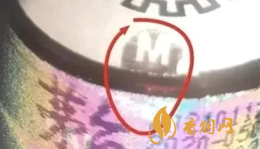 ③借助茅台的防伪识别器或者用强光倾斜45°照射,旋转着茅台酒瓶身,看到茅台酒红胶帽上方与帽侧面交汇处会出现“MT”暗记。